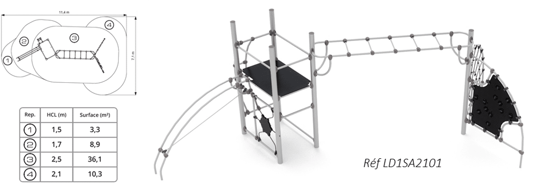 Cette gamme est destinée aux enfants à partir de 6 ans. Les couleurs sobres des matériaux et son style aéré lui permettent d’être implantée aussi bien dans un cadre urbain que dans un environnement boisé.